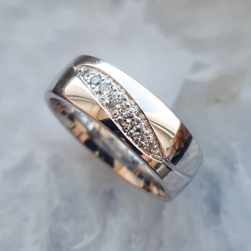 Sõrmust saab tellida nii kollasest-, punasest – kui valgest kullast. Fotol valge kuld.