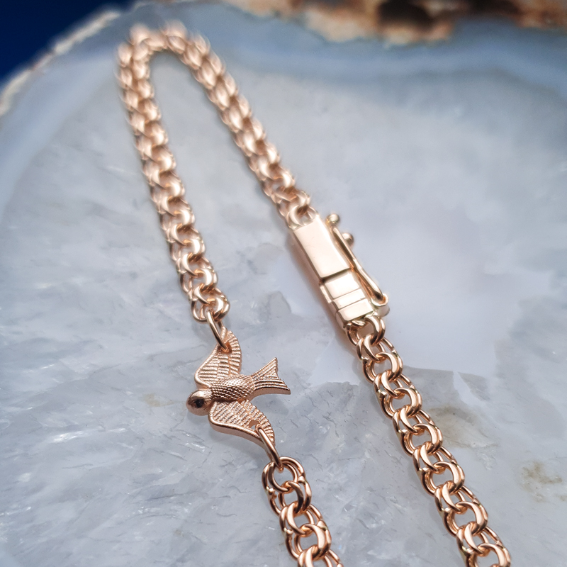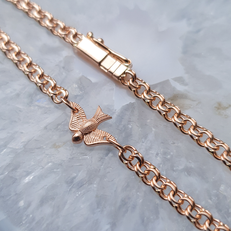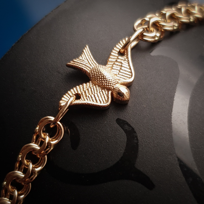 Bismarck stiilis kullast käekett linnu ripatsiga