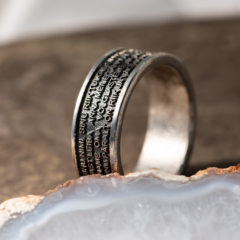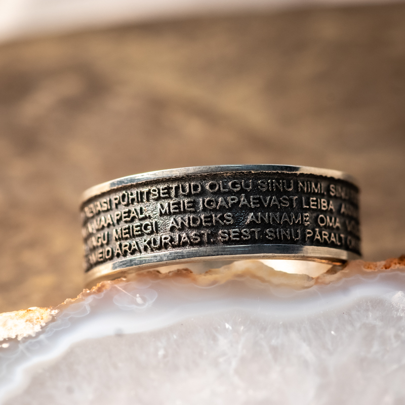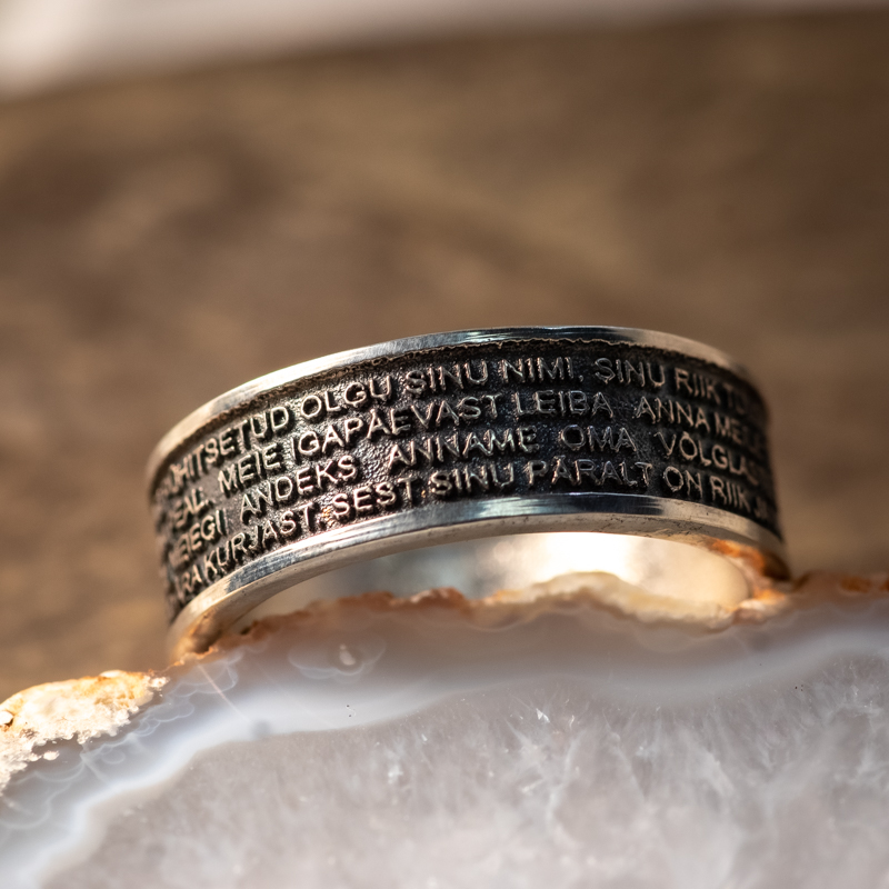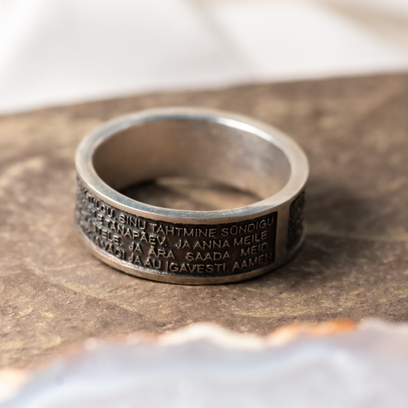 Oksüdeeritud põhjaga Meie Isa Palvega hõbesõrmus on LuxMartini kaubamärgi all valmistatud originaaltoode.