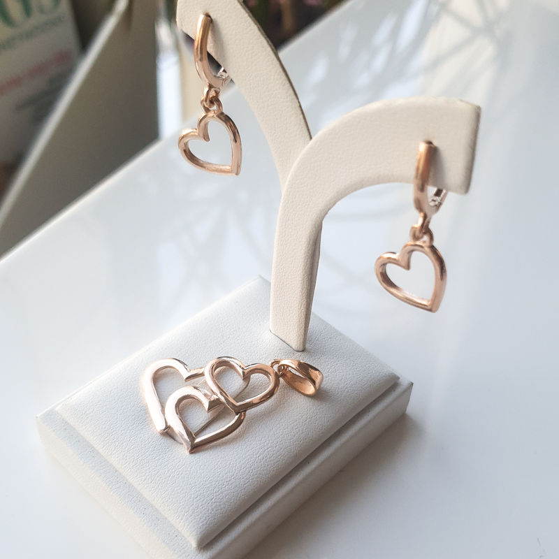 Mõõdud: Ripatsi kõrgus koos öösiga on 35mm ja laus 26mm. Kõrvarõnga kõrgus 35mm ja laus südamel 14mm.