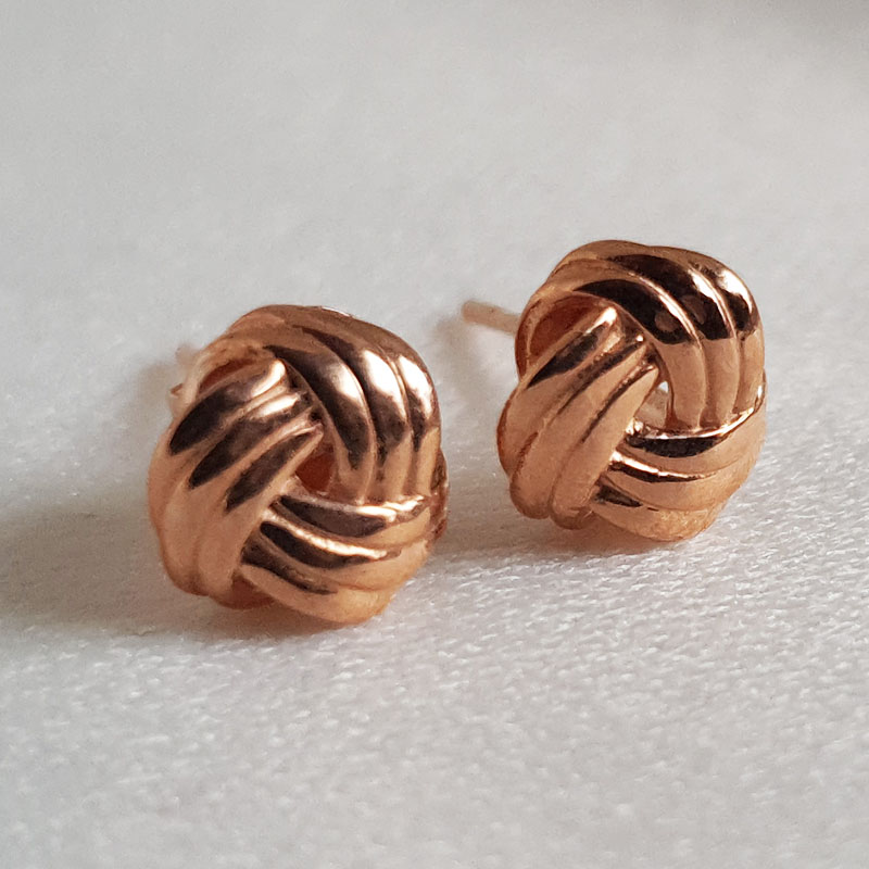 Põimitud motiiviga klassikalised kõrvarõngad. 585 proovis punane kuld. Klassikaline liblika kinnitus. Kaal on 0,89 grammi. Kõrvarõnga pealmise osa diameeter on 6,5mm.