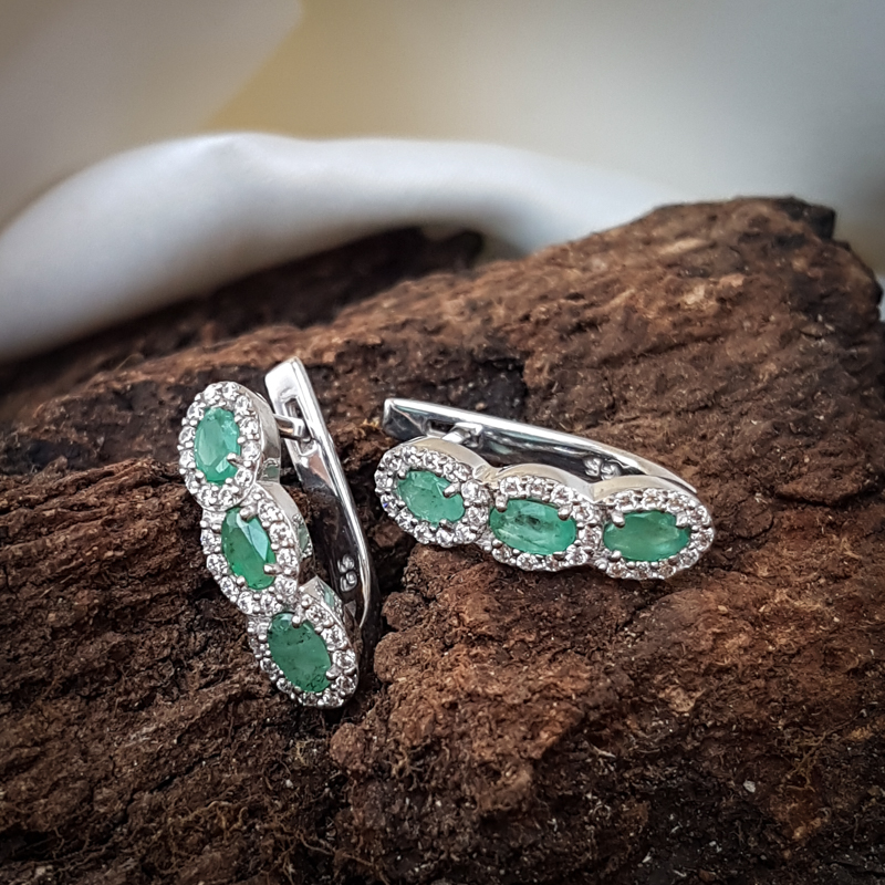 Hõbekõrvarõngad smaragdi ja tsirkoonidega.Prooviga 925. Kaal 4,59g. Olemas ka kõrvarõngastega sobiv hõbesõrmus, sisesta otsingusse: Aimee