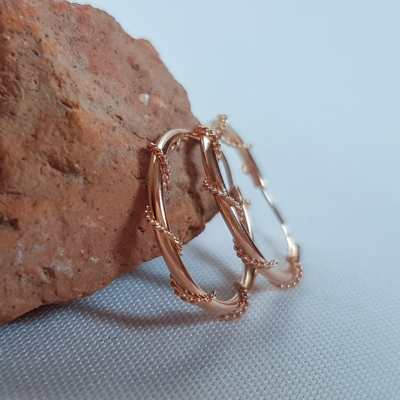 Kullast rõngakujulised kõrvarõngad. Diameeter 1.5cm. Prooviga 585. Kaal 1,04g.