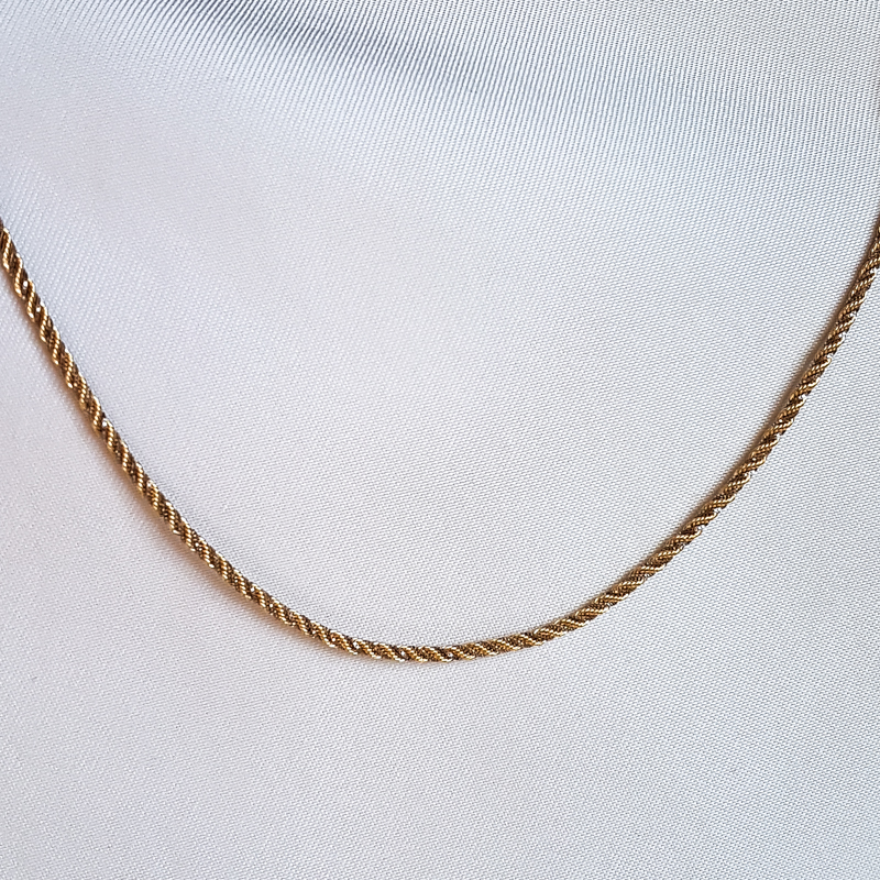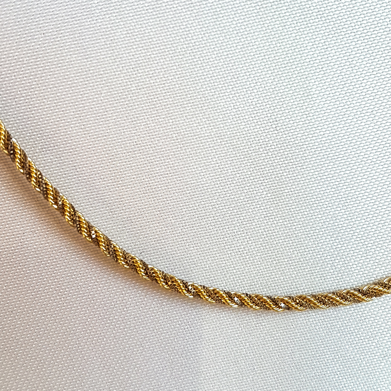 Kullast kaelakett. Kollane kuld prooviga 585. Laius 2,1mm. Pikkus 44 cm. Kaal 5,35g.