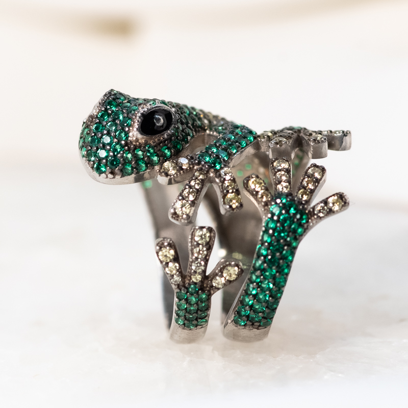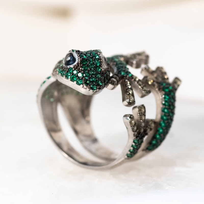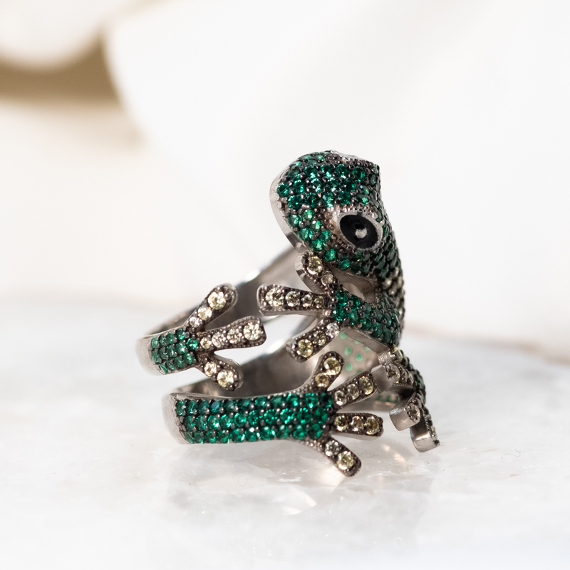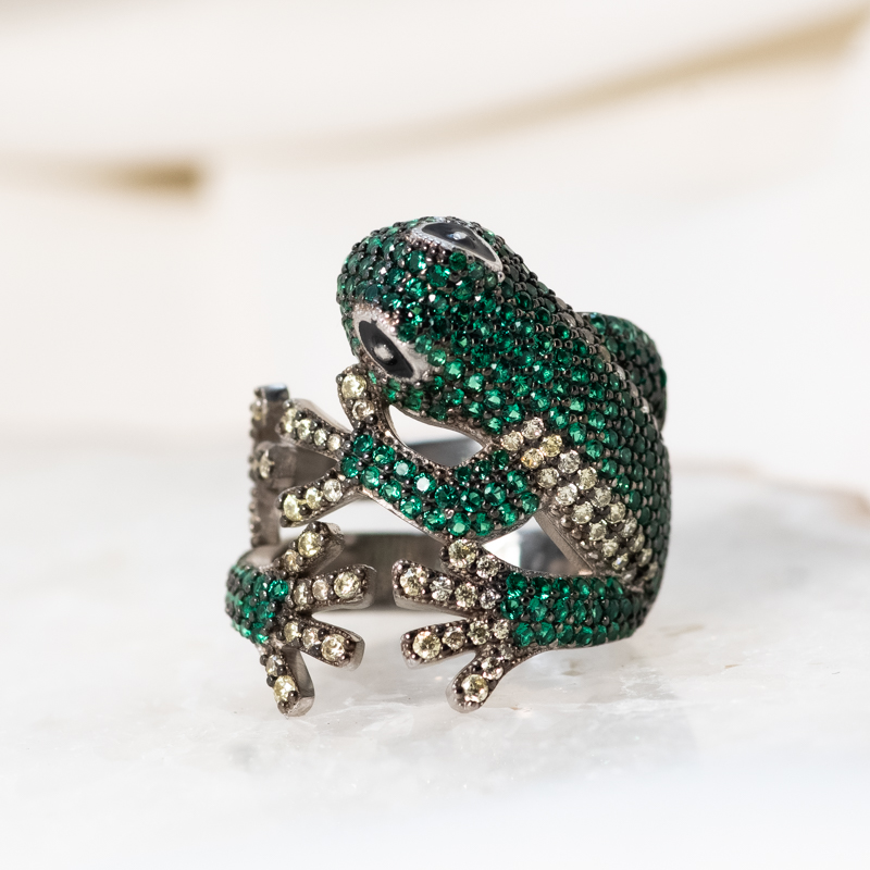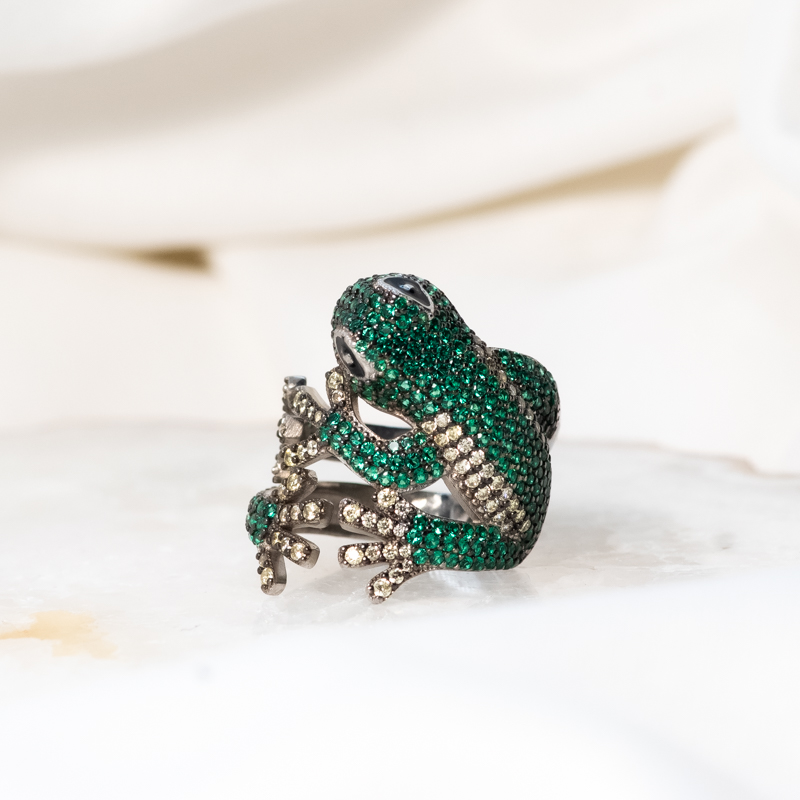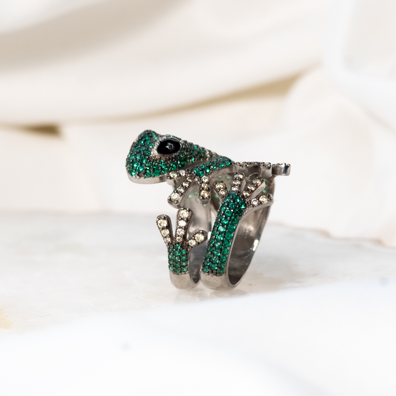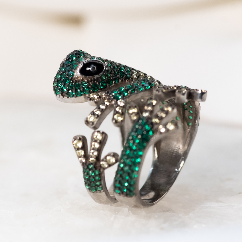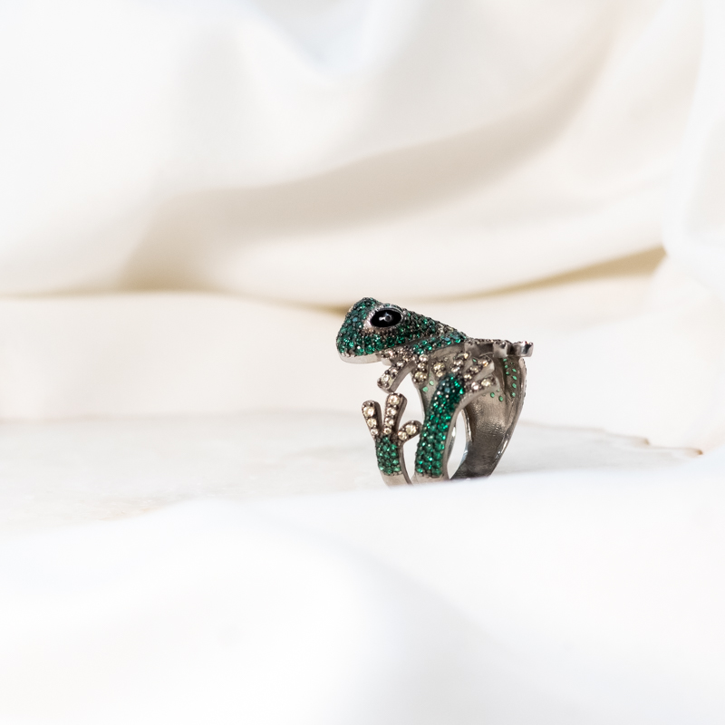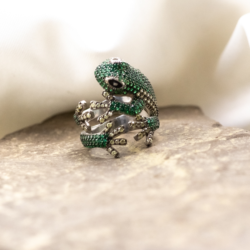 Tsirkoonidega, looduslähedane ja stiilne rodeeritud hõbesõrmus. Prooviga 925, kaal 9,26g. Suurus 18