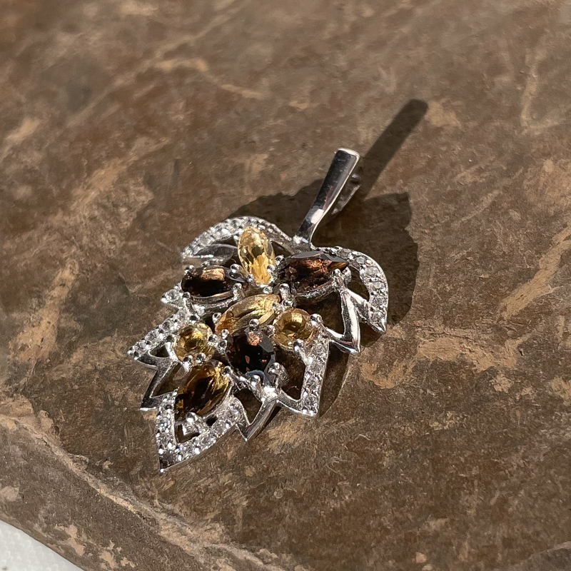 Suitsukvartsi- ja tsirkoonidega hõberipats. Prooviga 925. Kaal 2,2g.