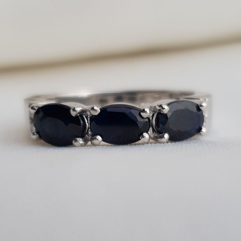 Naturaalsete sügavsiniste safiiridega 925 proovis hõbesõrmus. Rodeeritud. Sõrmuse kaal 3,5 grammi ja saadaval on suurused 17,5 ; 18 ja 19. Palun kirjuta kommentaari enda sõrmuse suuruse soov.