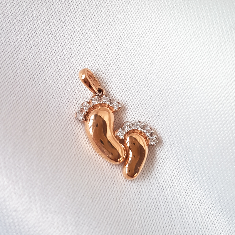 Kullast ripats jalakestega. Tsirkoonkivid. Prooviga 585. Kaal 0,81g.