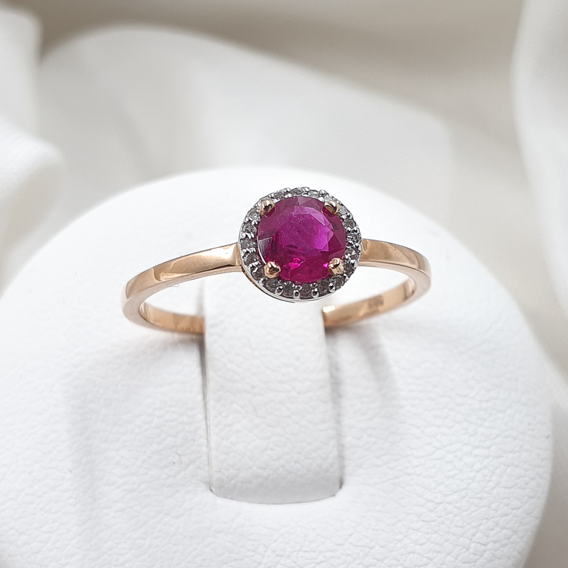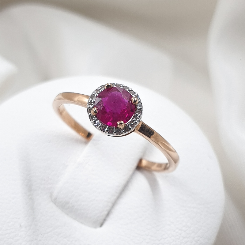 Elegantne ja naiselik loodusliku rubiiniga ja teemantidega sõrmus.