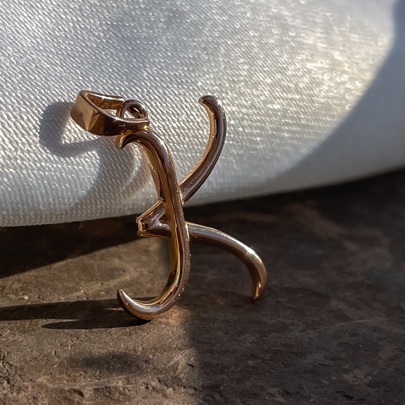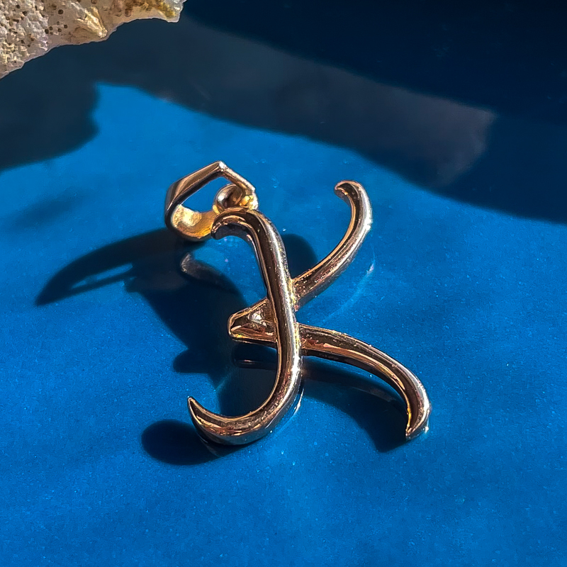 Kullast ripats K-tähega. Prooviga 585. Kaal 0,98g.
