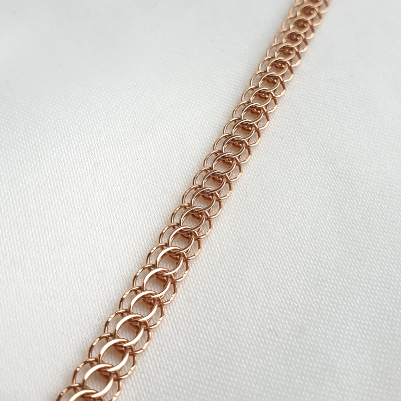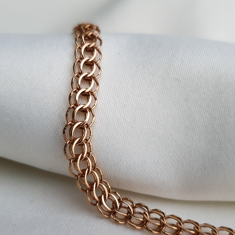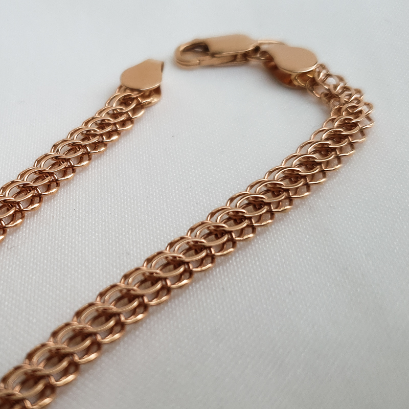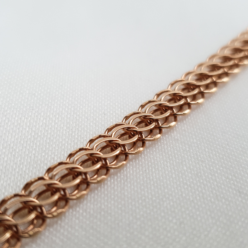 Punasest kullast kobra käekett. Prooviga 585. Pikkus 21,5cm. Kaal u 5,7g.
