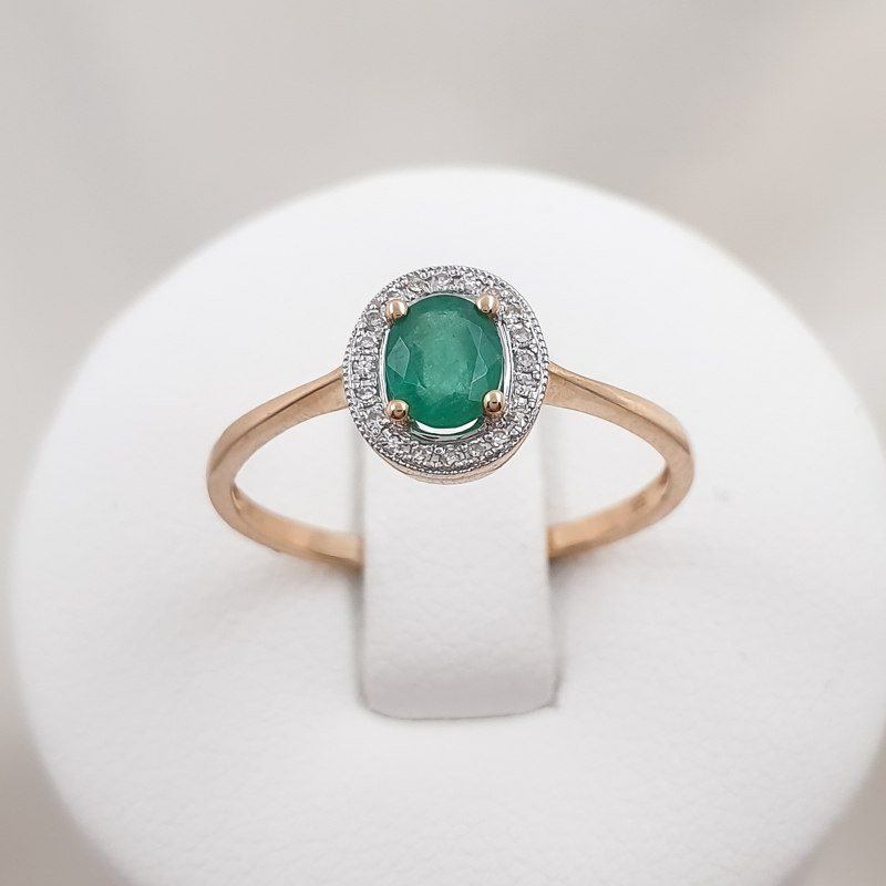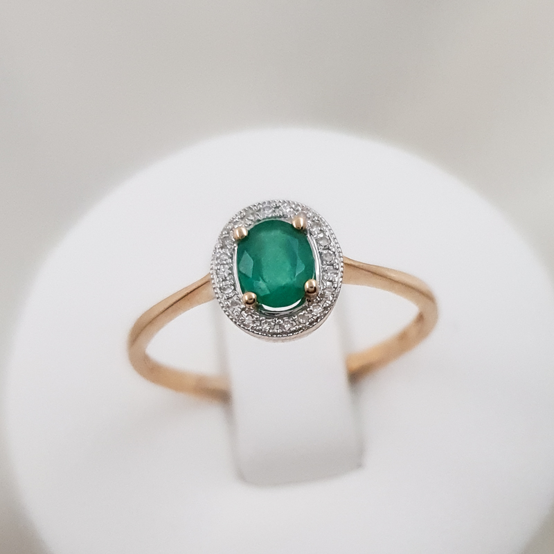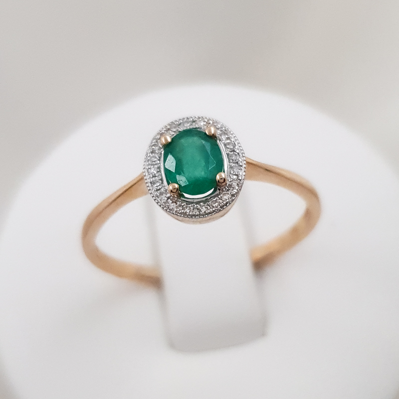 Kauni disainiga, loodusliku smaragdi ja teemantidega kuldsõrmus.
