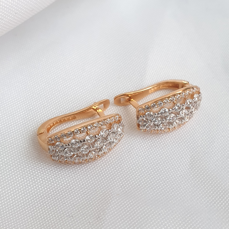 Kuldkõrvarõngad tsirkoonkividega. Prooviga 585. Kaal 3,85g.