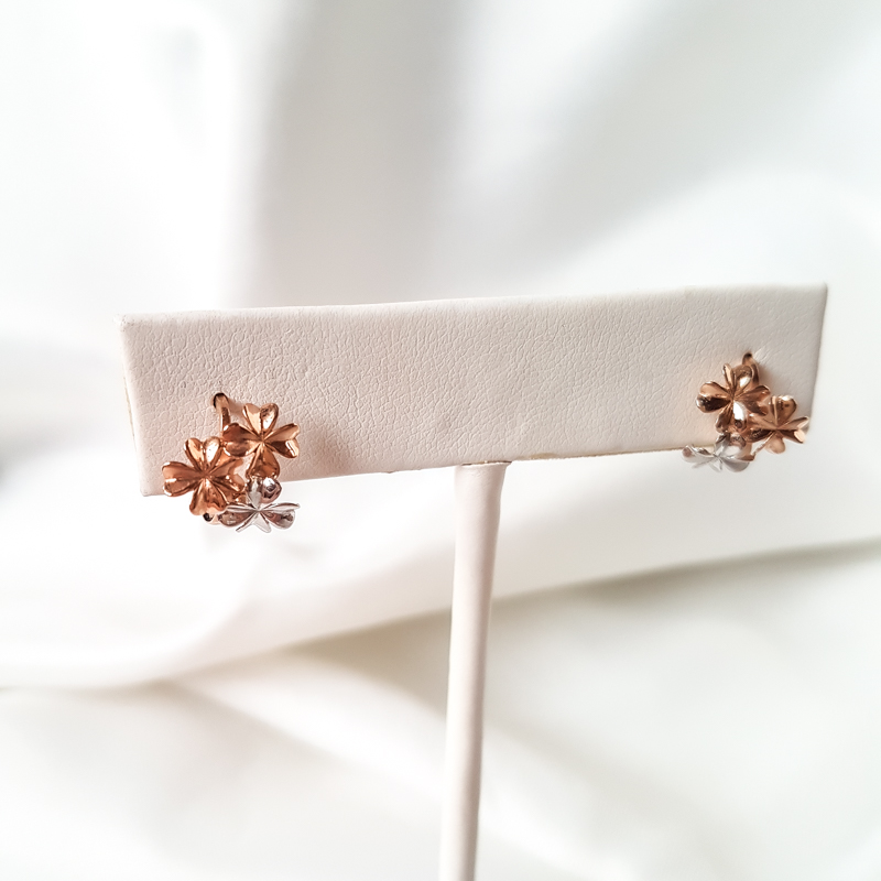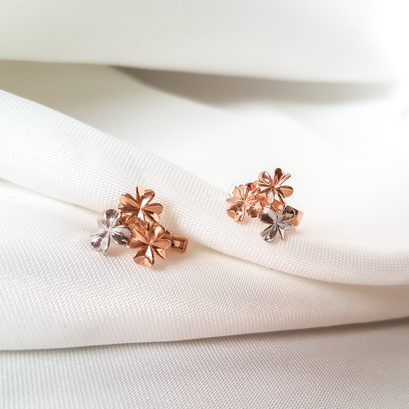 Lilleõitega kullast kõrvarõngad. Prooviga 585. Kaal 2,26g.