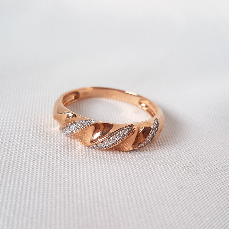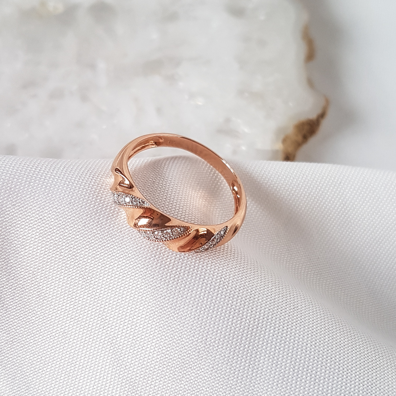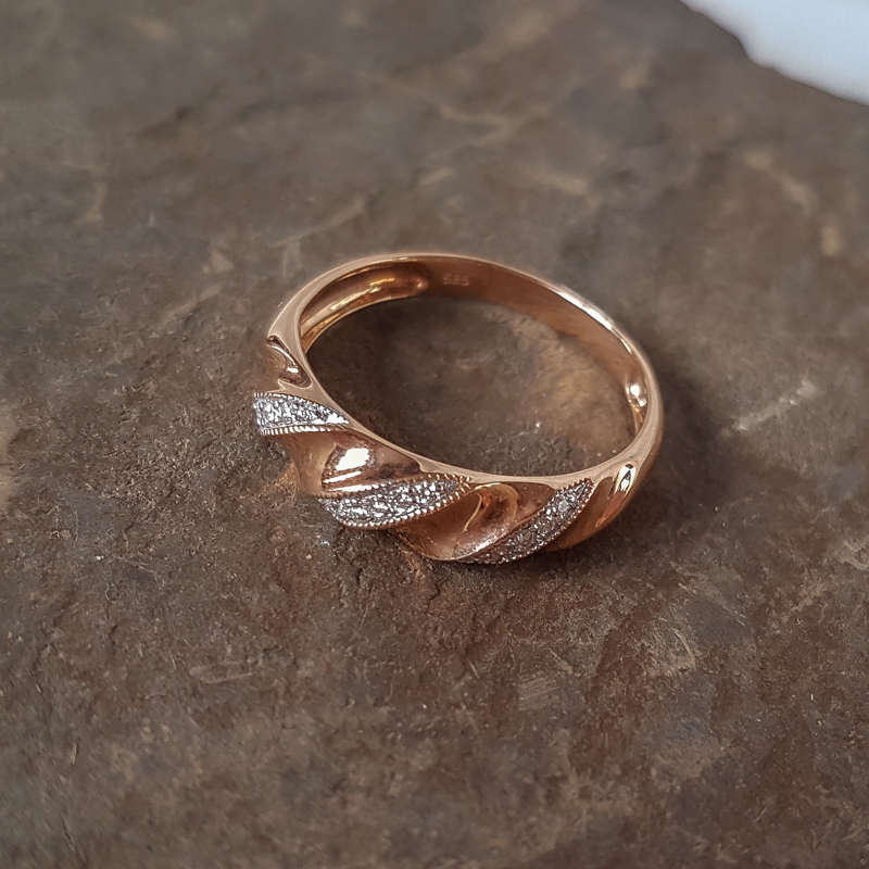 Kuldsõrmus teemandiga. 585 proovis. Kaal 2,48g. Suurus 19